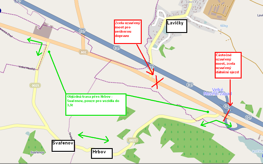 V neděli 23.5. se konala ve Svařenově poutní mše svatá. O den později začala platit uzavírka několika mostů na krajské silnici číslo II/602.V důsledku toho se staly silnice č. III/0025 a č. III/0027 objízdnou trasou pro osobní automobily, linkovou autobusovou dopravu a nákladní automobily, které nejsou způsobilé jízdě po dálnici D1. Hrbovem a Svařenovem však i přes časté kontroly státní i městské policie zakázaná nákladní vozidla projížděla. Několikrát tak utrhla okapovou rouru na domě č.p. 9 a způsobovala nadměrný hluk. Neobvyklá intenzita dopravy navíc ničila zmíněné objízdné silnice, které musely být už během trvání objížďky opravovány.