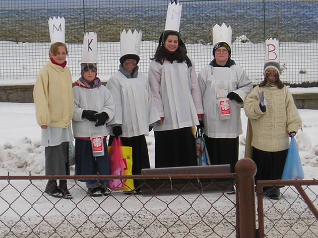 Na fotografiích jsem také už tehdy zachytil přípravu ledové plochy na nádrži na hrbovské návsi. A též tříkrálovou obchůzku v neděli 4. 1. 2004.