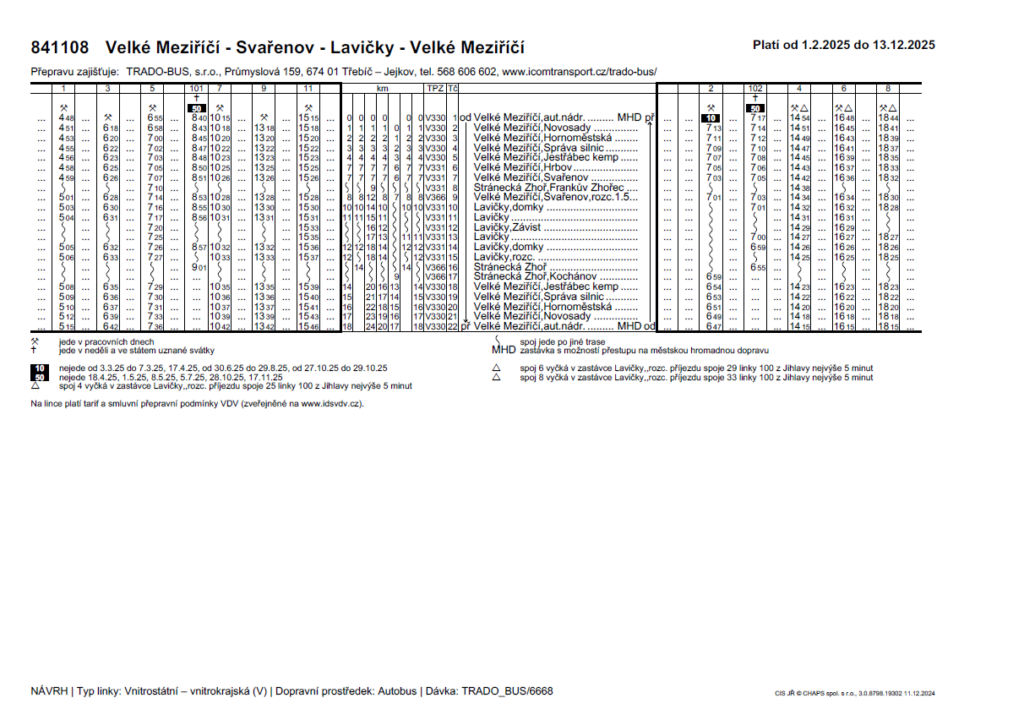 Jak už jistě víte, od 1. února se má změnit autobusový jízdní řád spojů, které jezdí přes Hrbov a Svařenov, Frankův Zhořec, Stráneckou Zhoř, Kochánov, Lavičky a Závist do Velkého Meziříčí, protože se zároveň změní i dopravce – nově bude na Velkomeziříčsku jezdit společnost Trado-bus ze skupiny ICOM Transport. Požádal jsem Krajský úřad o aktuální návrh řádu a teď ho nabízím i Vám. Podle Alexandra Torgala z Odboru dopravy a silničního hospodářství Krajského úřadu Kraje Vysočina se všechny nové jízdní řády objeví ve vyhledávačích do konce roku.