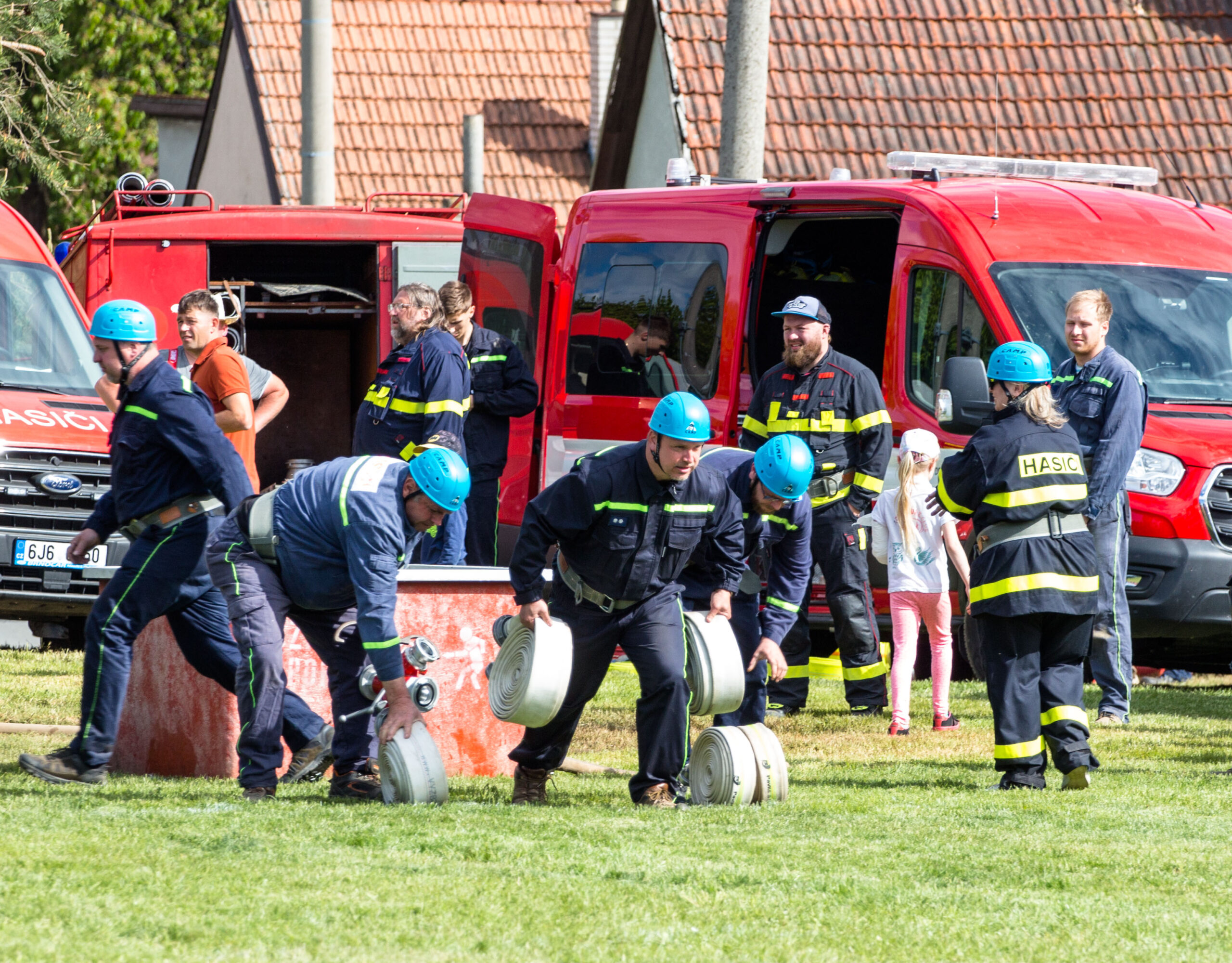 Níže nabízím fotogalerii hrbovského týmu na soutěži a taky video druhého (úspěšného) požárního útoku.