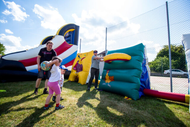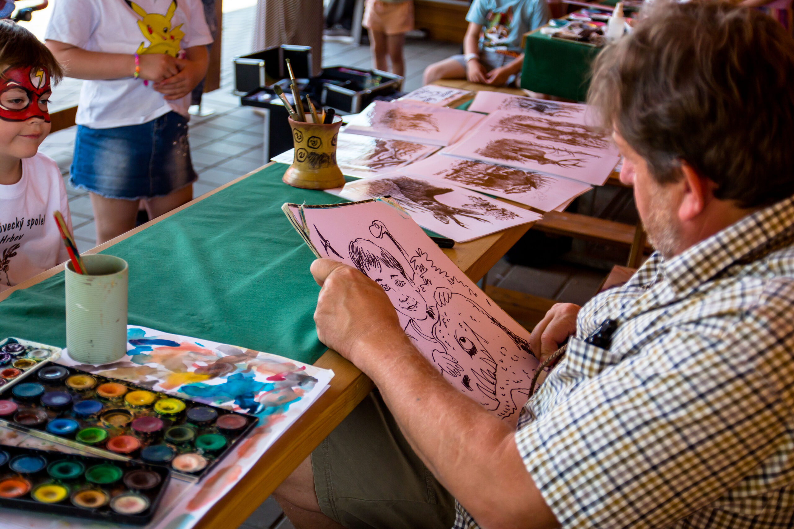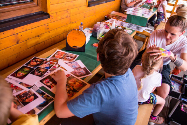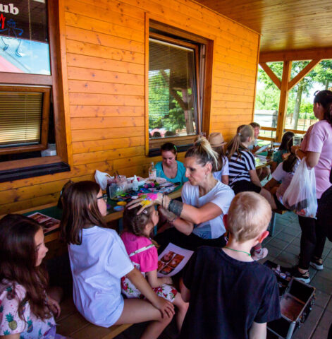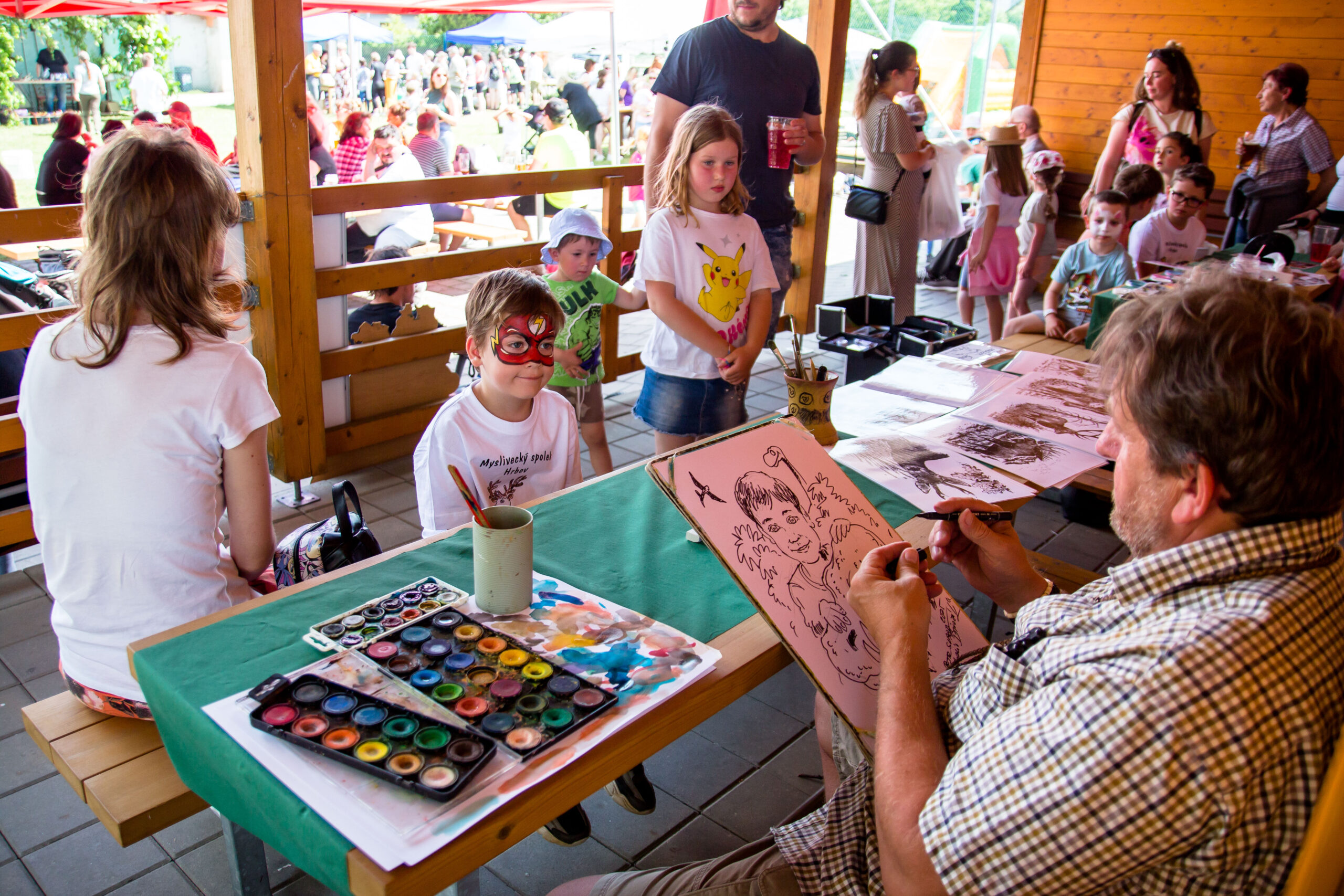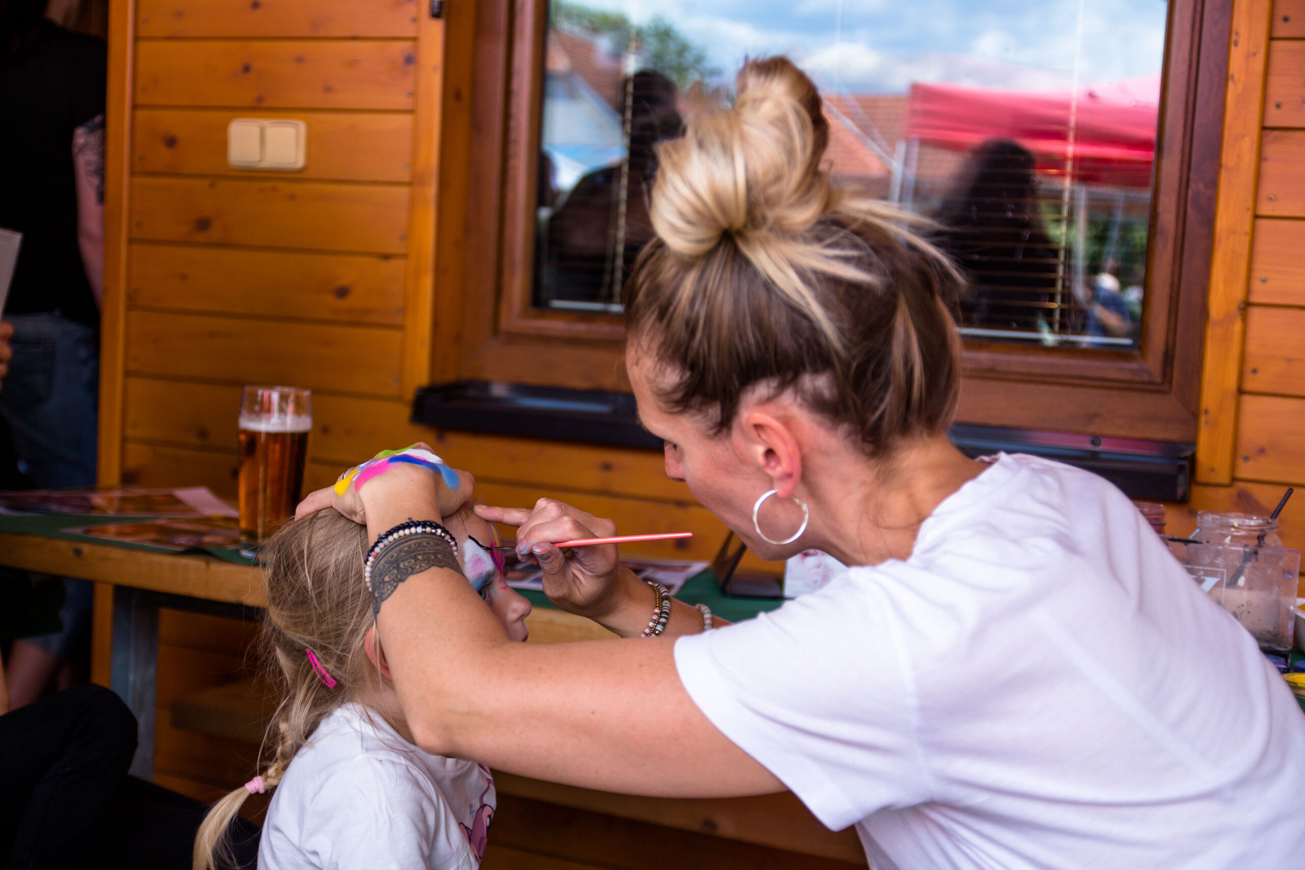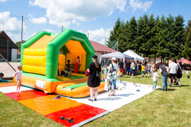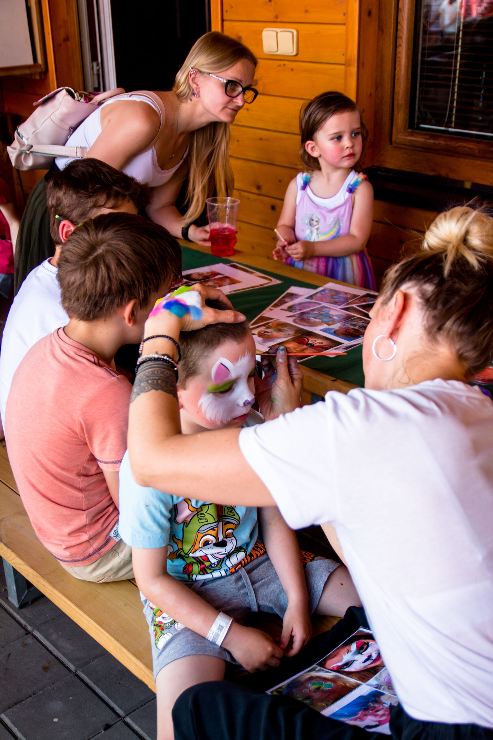 Pro vyplnění volného času nabídli myslivci také hned několik nafukovacích atrakcí. Děti si mohly nechat nakreslit karikaturu nebo veselou masku na obličej. A nechybělo ani občerstvení – divočák, pro děti ale i hranolky nebo párky v rohlíku.